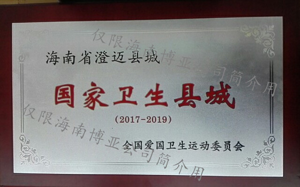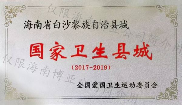③、白沙縣:2016年至2017年期間(2015年也是我公司負責病媒防制工作)參與白沙縣創(chuàng)建國家衛(wèi)生縣城,于2017年通過國家衛(wèi)生縣城國家病媒專家技術(shù)評估組的達標考核驗收,并于當年獲得“國家衛(wèi)生縣城”榮譽稱號。