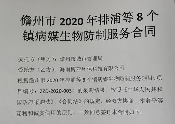 ④、儋州市:2018-2020年間參與了儋州市峨蔓、光村、木棠、新州、大成、東成、海頭、排浦等8個鎮(zhèn)鎮(zhèn)墟病媒生物防制消殺服務(wù)項目及儋州市建城區(qū)的病媒生物防制服務(wù)。